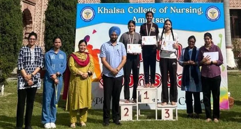 अमृतसर, 17 मार्च: खालसा कॉलेज ऑफ नर्सिंग में वार्षिक खेल दिवस बड़े उत्साह और जोश के साथ मनाया गया। कार्यक्रम का आयोजन कॉलेज प्रिंसिपल डॉ. अमनप्रीत कौर के निर्देशन में किया गया। इस अवसर पर लंबी कूद, डिस्कस थ्रो, शॉट पुट, शतरंज, टेबल टेनिस, कैरम, बैडमिंटन, दौड़, रिले दौड़, जैवलिन थ्रो और रस्साकशी जैसी कई प्रतियोगिताएं आयोजित की गईं। विद्यार्थियों ने इन खेलों में बढ़-चढ़कर हिस्सा लिया।