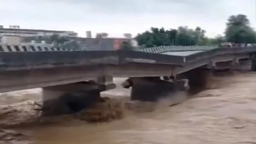 कठुआ, 24 अगस्त : जम्मू-कश्मीर के कठुआ में भारी बारिश जारी है। लगातार भारी बारिश से हालात बिगड़ गए हैं। नदियां उफान पर हैं। इस बीच, जम्मू-पठानकोट हाईवे के पास सहार खड्ड नदी पर बना पुल क्षतिग्रस्त हो गया है। सहार खड्ड नदी पूरी तरह उफान पर है। पानी पुल से टकरा रहा है। पानी के तेज बहाव के कारण पुल क्षतिग्रस्त हो गया है। वाहनों की आवाजाही रोक दी गई है। मौके पर लोगों की भीड़ जमा हो गई है। इसके साथ ही, दूसरी तरफ बने पुल से लोग यह नजारा देख रहे हैं। ट्रैफिक पुलिस भी मौके पर पहुँच गई है और लोगों को वहाँ जाने से रोक रही है।