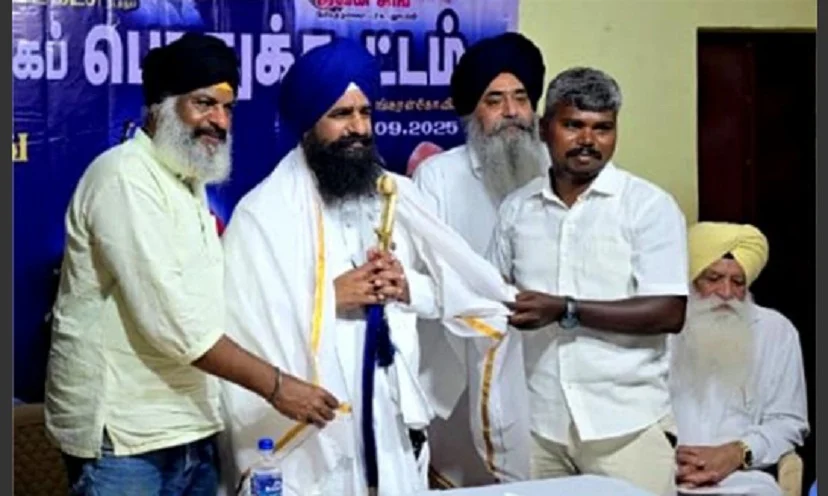 अमृतसर, 13 सितम्बर : श्री अकाल तख्त साहिब के कार्यवाहक जत्थेदार और तख्त श्री केसगढ़ साहिब के जत्थेदार ज्ञानी कुलदीप सिंह गडग़ज ‘खरड़ सब मिलेंगे धर्म प्रचार’ आंदोलन के तहत सिख धर्म का प्रचार करने के लिए तमिलनाडु राज्य के तेनकासी जिले के शंकरनकोविल कस्बे में पहुंचे। शंकरनकोविल पहुंचने पर तमिल सिखों और सुप्रीम कोर्ट के वकील जीवन सिंह, सेल्वा सिंह, कोरकाई पलानी सिंह और स्थानीय समुदाय के लोगों ने बैंड पार्टी और आतिशबाजी के साथ जत्थेदार ज्ञानी कुलदीप सिंह गडग़ज का स्वागत किया और कार्यक्रम के दौरान उन्हें सम्मानित किया।