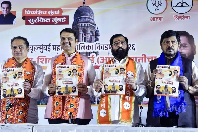 मुंबई, 12 जनवरी : मुंबई में आगामी नगर निगम चुनावों के लिए महायुति गठबंधन ने अपना मैनिफेस्टो जारी किया, जिसमें शहर को एक “आलमी महाशक्ति” बनाने के उद्देश्य से कई अहम योजनाओं का उल्लेख किया गया है। इस मैनिफेस्टो में तकनीक आधारित शासन, महिलाओं के लिए बेस्ट बसों में किराए में 50% छूट और शहर को बांगलादेशी प्रवासियों से “मुक्त” करने का वादा किया गया है।