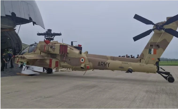 अमेरिका से तीन अपाचे हेलीकॉप्टर भारत पहुँच गए हैं। इन हेलीकॉप्टरों को पाकिस्तान से लगी सीमा (भारत-पाकिस्तान सीमा) पर तैनात किया जाना है। ‘हवा में टैंक’ कहे जाने वाले AH-64E उन्नत लड़ाकू हेलीकॉप्टर हैं, जो भारतीय सेना की ताकत बढ़ाएँगे। भारतीय सेना इन अत्याधुनिक हेलीकॉप्टरों को पश्चिमी मोर्चे पर जोधपुर में तैनात करेगी। इस तैनाती से क्षेत्र में सेना की आक्रमण क्षमता बढ़ने की उम्मीद है।