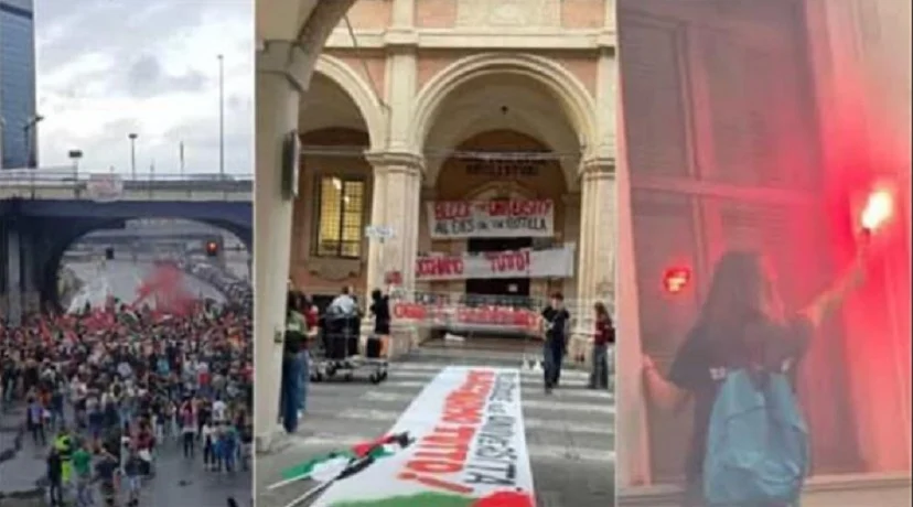 गाजा के लिए इटली के लोग सड़कों पर उतर आए और पहले तो रेलगाड़ियाँ, सार्वजनिक परिवहन और स्कूल बंद कर दिए, और बाद में बड़ी संख्या में लोग बड़े शहरों की सड़कों पर मार्च करते हुए धरने पर बैठ गए और नारे लगाने लगे। इस विशाल विरोध प्रदर्शन का जहाँ रोम में विनाशकारी प्रभाव देखा गया, वहीं मिलान में प्रदर्शनकारियों की पुलिस से झड़प हुई। न्याय के लिए जमीनी स्तर पर काम करने वाले संघ सिंडाकाले द्वारा आहूत राष्ट्रव्यापी विरोध प्रदर्शन पूरे दिन प्रशासन के लिए सिरदर्द बना रहा और पुलिस उन्हें नियंत्रित करने में व्यस्त रही।