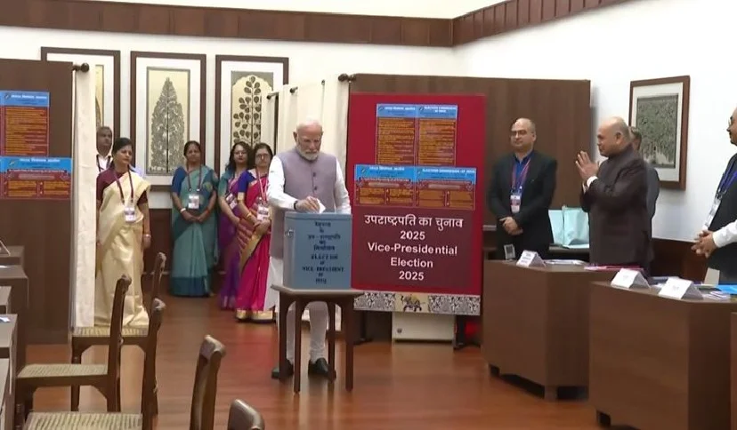 नई दिल्ली, 9 सितम्बर : उपराष्ट्रपति चुनाव के लिए मतदान शुरू हो गया है। प्रधानमंत्री नरेंद्र मोदी ने सबसे पहले वोट डाला। मतदान के दौरान सत्तारूढ़ एनडीए उम्मीदवार सीपी राधाकृष्णन और ‘भारत’ गठबंधन के संयुक्त उम्मीदवार बी. सुदर्शन रेड्डी के बीच सीधा मुकाबला है। हालाँकि, संख्याबल के लिहाज से भाजपा नीत एनडीए उम्मीदवार राधाकृष्णन का पलड़ा भारी है। उपराष्ट्रपति पद के लिए चुनाव मानसून सत्र के पहले दिन 21 जुलाई को स्वास्थ्य कारणों का हवाला देते हुए जगदीश धनखड़ के अचानक इस्तीफे के कारण कराना पड़ा था।