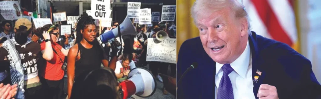 वॉशिंगटन डी.सी. से लेकर नॉर्थ कैरोलिना के छोटे शहर ऐशविल तक सैकड़ों प्रदर्शनकारी सड़कों पर उतरे। सोशल मीडिया पर वायरल वीडियो में लोग “ना ICE, ना KKK, ना फासीवादी अमेरिका” जैसे नारे लगाते दिखे। न्यूयॉर्क, लॉस एंजेलिस, शिकागो और पोर्टलैंड समेत कई शहरों में छात्रों ने कैंपस वॉकआउट किए, जहां पुलिस से झड़पों की भी खबरें आईं।